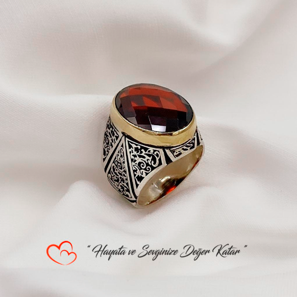 925 ayar gümüş Tasarım Sarmaşık موديل kırmızı Garnet Taşlı Trend Erkek Yüzük
