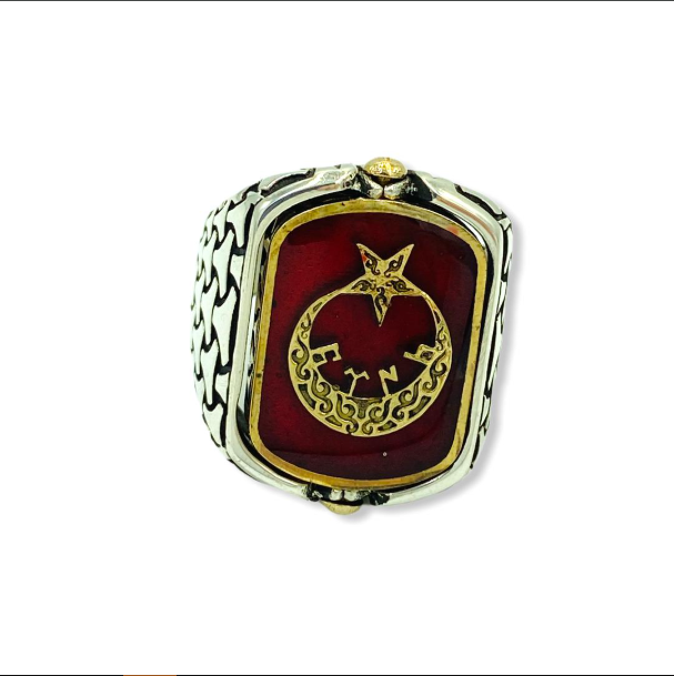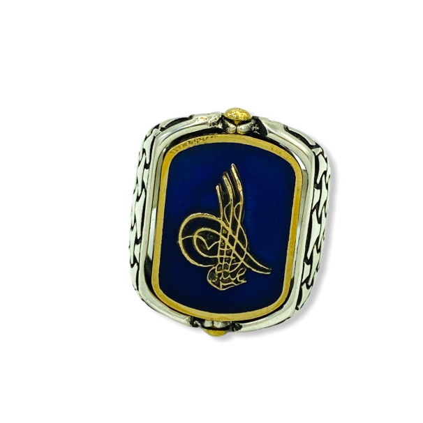 925 ayar Gümüş oksitli otantik çift yönlü dönerli osmanlı tuğra ayyıldız türk yazılı model özel tasarım erkek yüzük