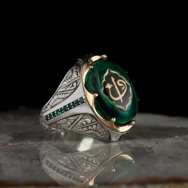 Elif Vav Harfli Kehribar Taşlı 925 Ayar Gümüş Yüzük